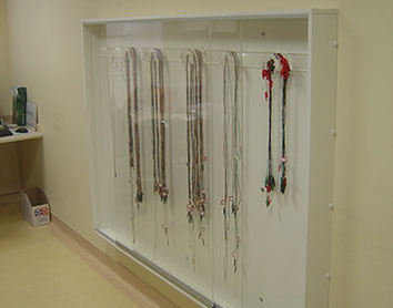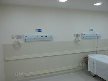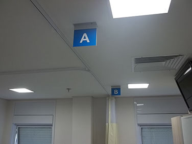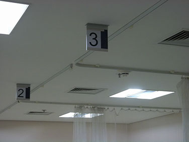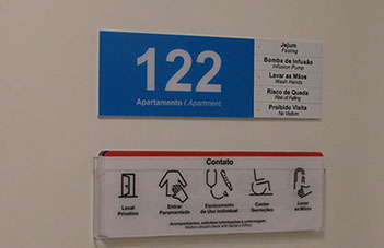 Placa Bandeira de Teto para Identificação de Leitos, possibilitando a identificação do leito mesmo com as cortinas fechadas.