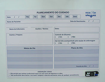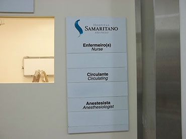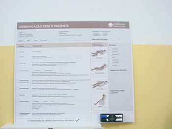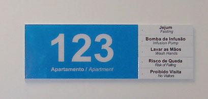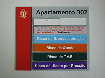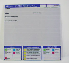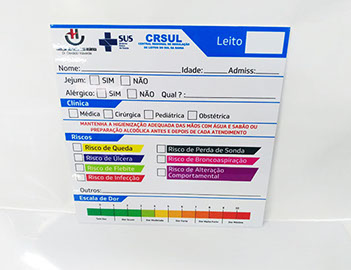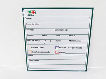 Placa de Leito, com inserção de informações impressas no envelope acrílico.