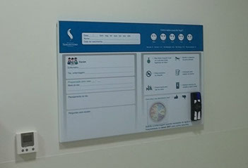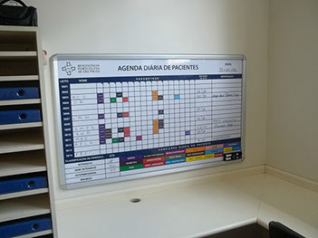 Painel Agenda Diária do Paciente em Vidro com Inserte Metálico para Utilizar Tarjetas Magnéticas.