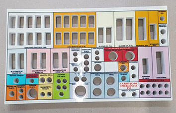 Organizador de medicamento para carrinhos de emergência e anestesia.