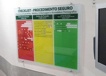 Montamos diversas ferramentas visuais para gestão da segurança do paciente, como por exemplo: painéis; placas; peças acrílicas; adesivos; entre outros.
